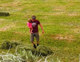 Wer im Sommer die Kühe der Henns auf der Weide sieht, dem bietet sich ein für heutige Tage ungewöhnliches Bild: Die Kälber stehen neben ihren behornten Müttern und saufen genüsslich aus deren Euter. Hier wird die so genannte muttergebundene Aufzucht praktiziert. Das bedeutet, dass die Kälber nicht wie sonst üblich kurz nach der Geburt von der Mutter getrennt und mit dem Tränkeeimer groß gezogen werden, sondern noch einige Monate bei den Milchkühen mitlaufen.