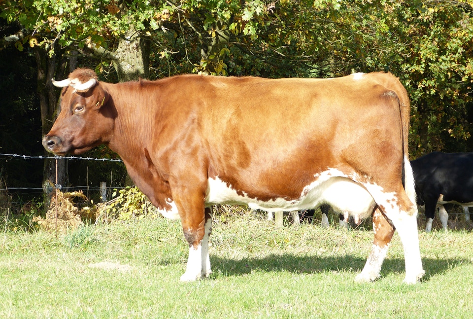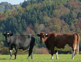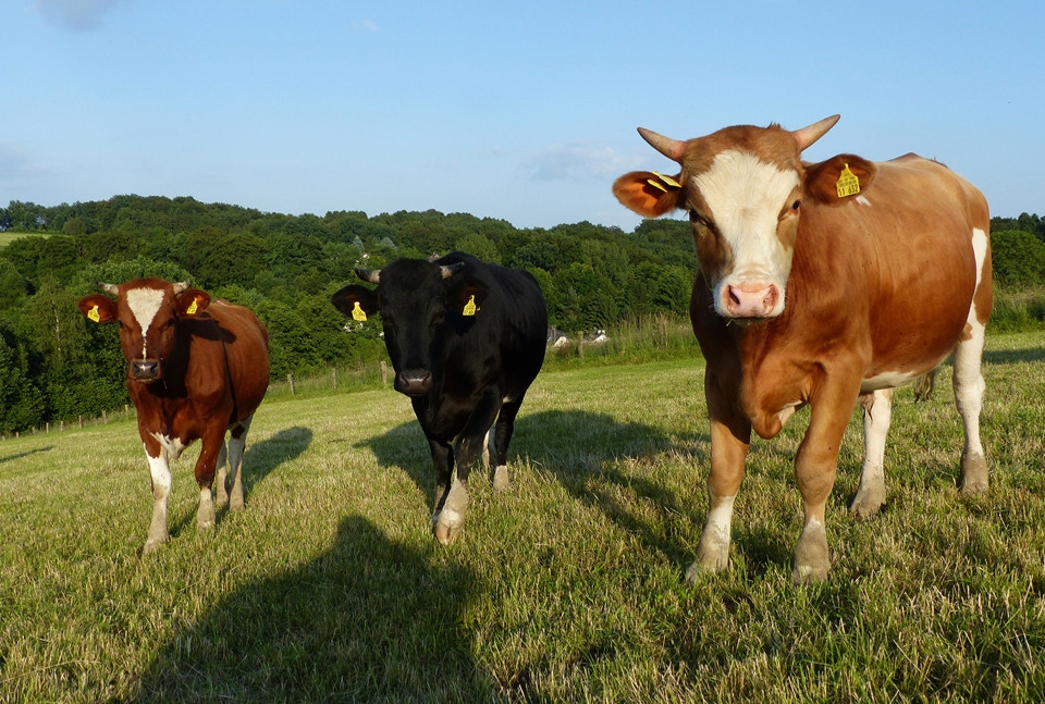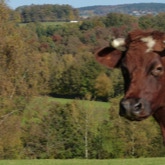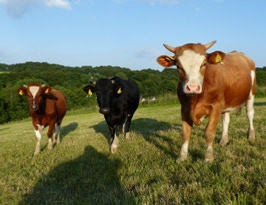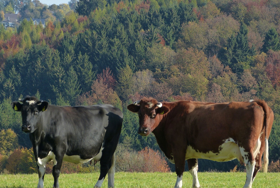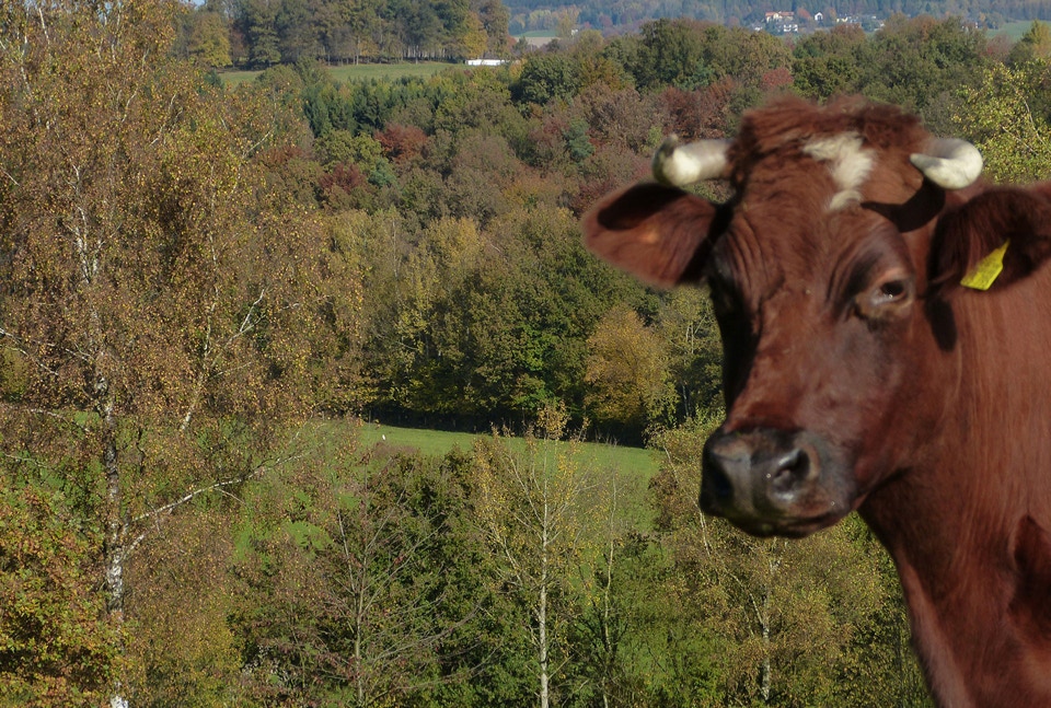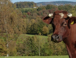 Wer im Sommer die Kühe der Henns auf der Weide sieht, dem bietet sich ein für heutige Tage ungewöhnliches Bild: Die Kälber stehen neben ihren behornten Müttern und saufen genüsslich aus deren Euter. Hier wird die so genannte muttergebundene Aufzucht praktiziert. Das bedeutet, dass die Kälber nicht wie sonst üblich kurz nach der Geburt von der Mutter getrennt und mit dem Tränkeeimer groß gezogen werden, sondern noch einige Monate bei den Milchkühen mitlaufen.